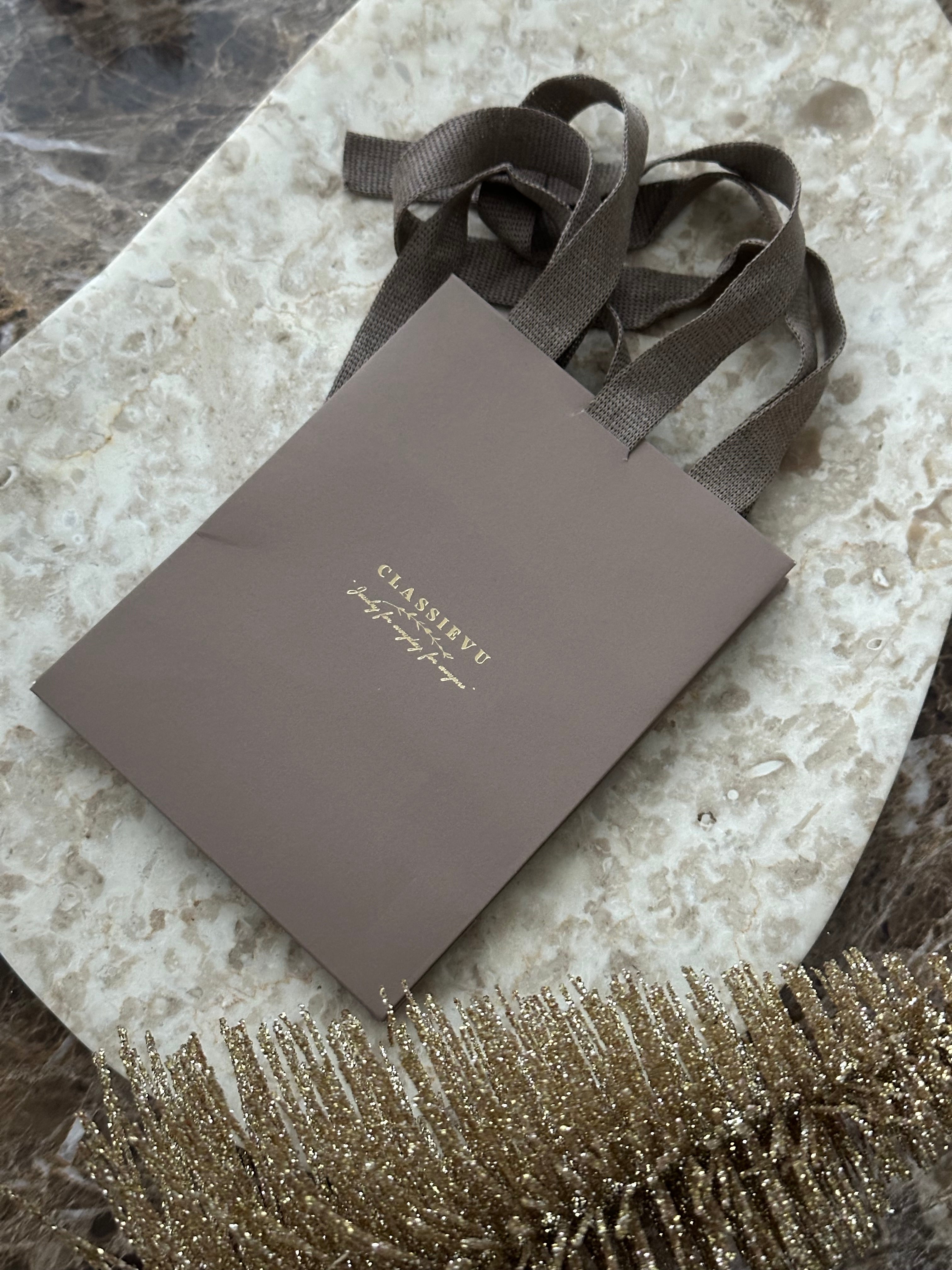 Lass dir deine Bestellung festlich mit unserer luxuriösen Geschenktüte verpacken und spare dir das verpacken zuhause !