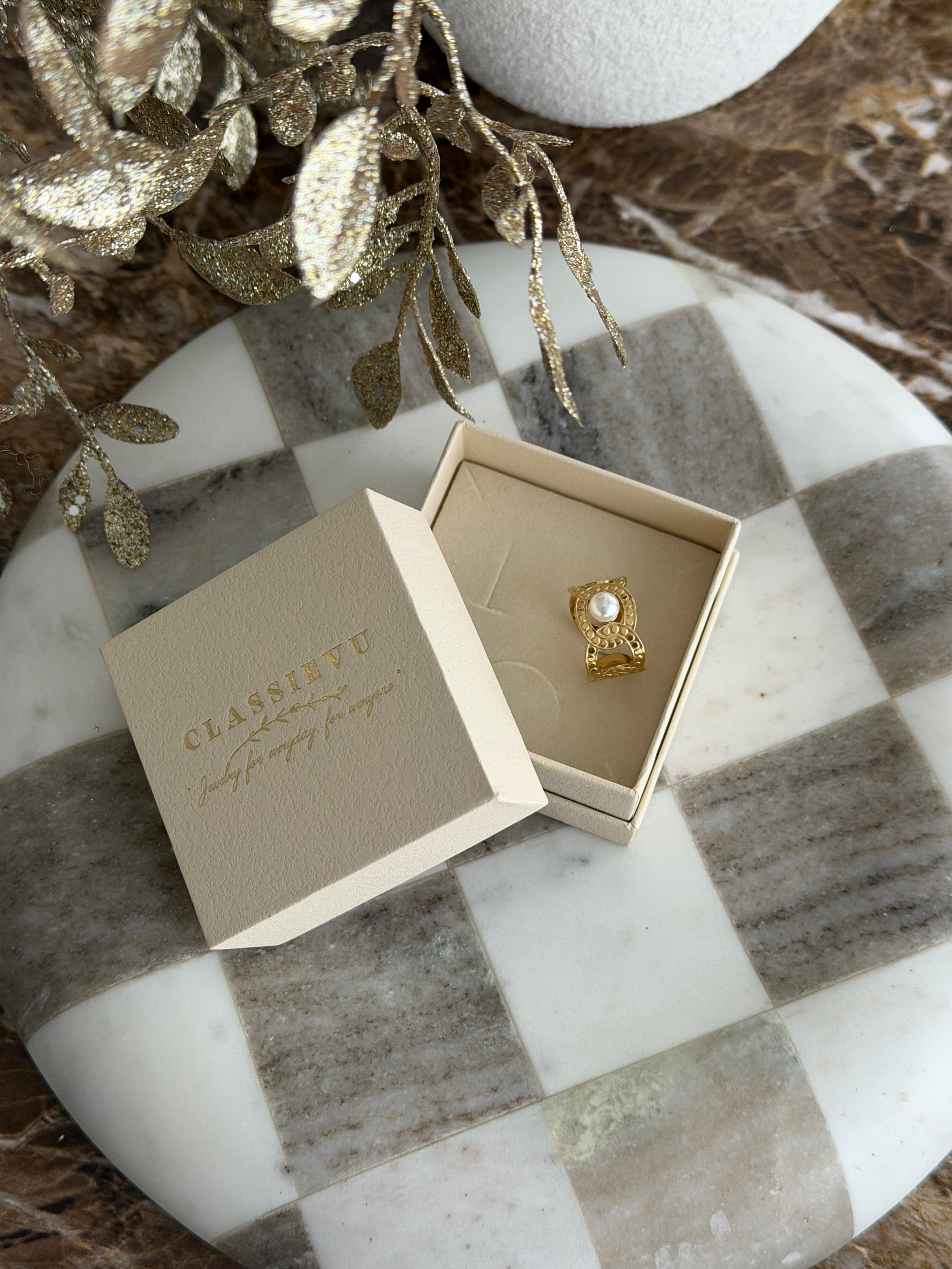 The ring is hypoallergenic, water-resistant, and ideal for everyday wear – whether as a subtle statement piece or an elegant accessory for special occasions. A versatile piece of jewelry that perfectly combines timeless elegance and modern functionality.
