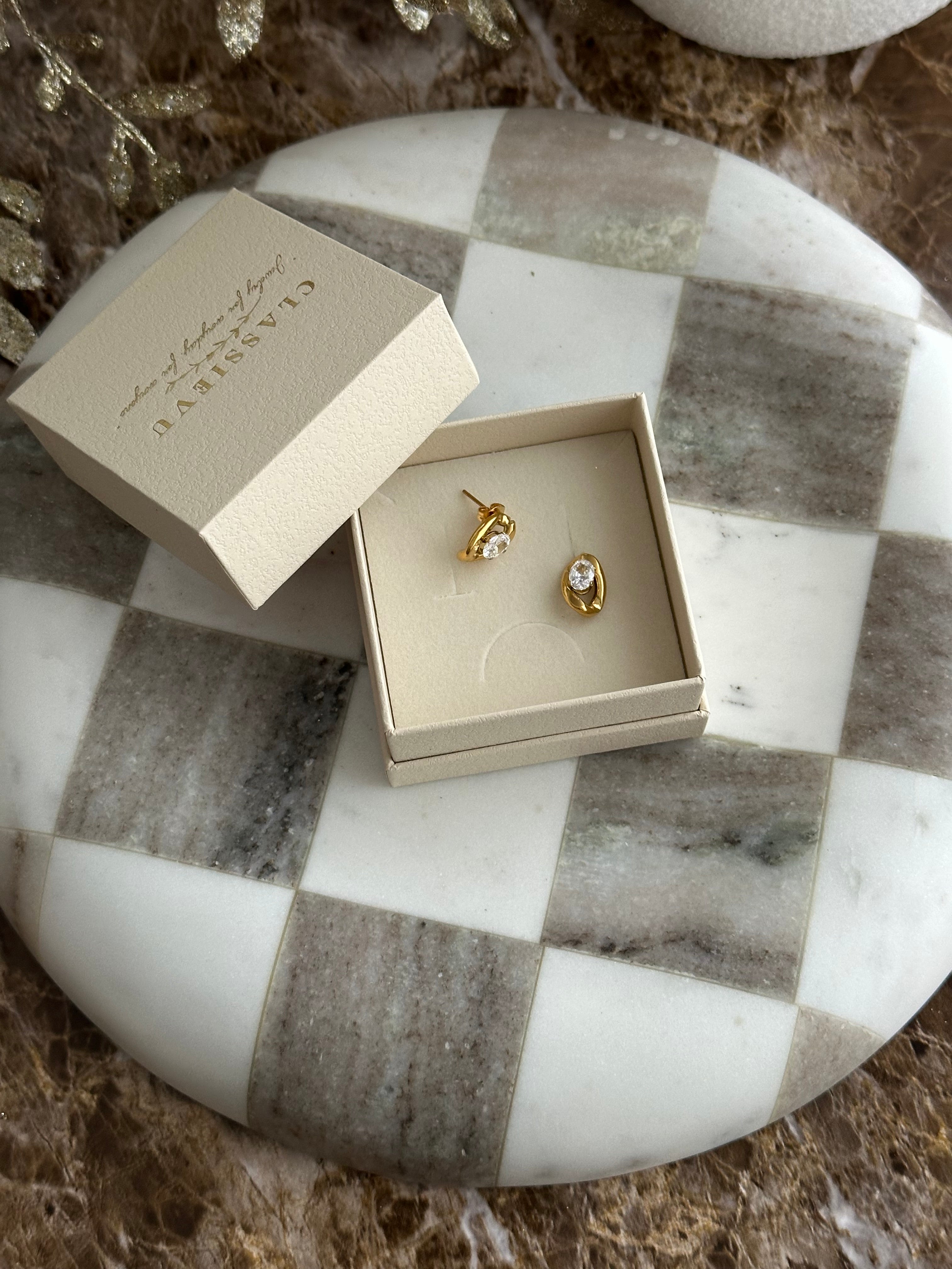 Unsere eleganten Ohrringe vereinen zeitloses Design mit hochwertiger Verarbeitung – perfekt für jeden Anlass. Gefertigt aus robustem Edelstahl und veredelt mit einer 14 Karat Vergoldung, überzeugen sie durch edlen Glanz und besondere Langlebigkeit.