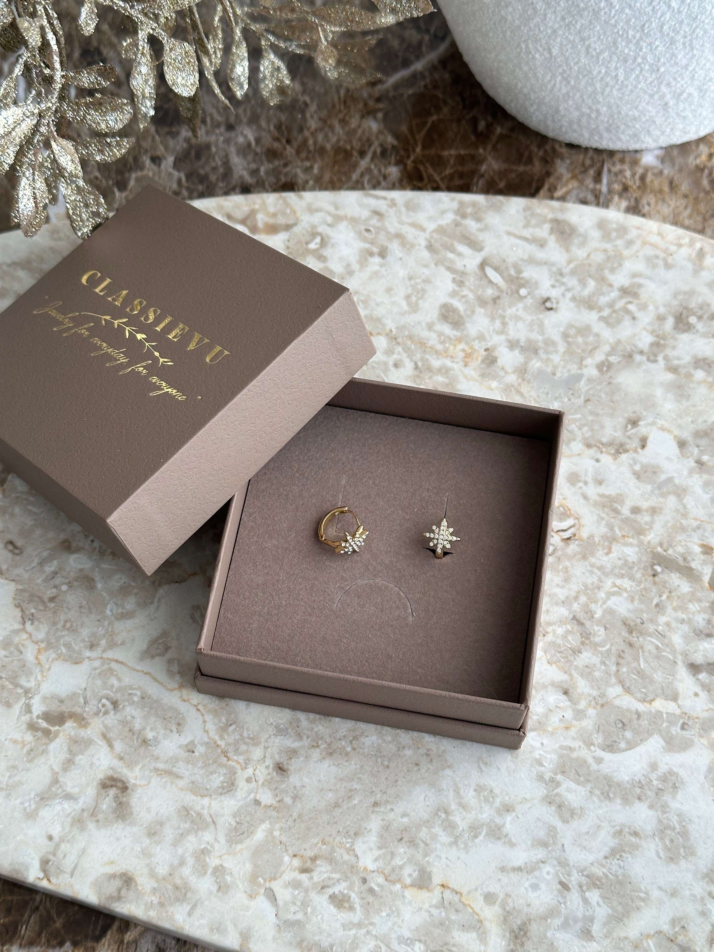 Unsere eleganten Ohrringe vereinen zeitloses Design mit hochwertiger Verarbeitung – perfekt für jeden Anlass. Gefertigt aus robustem Edelstahl und veredelt mit einer 14 Karat Vergoldung, überzeugen sie durch edlen Glanz und besondere Langlebigkeit.
