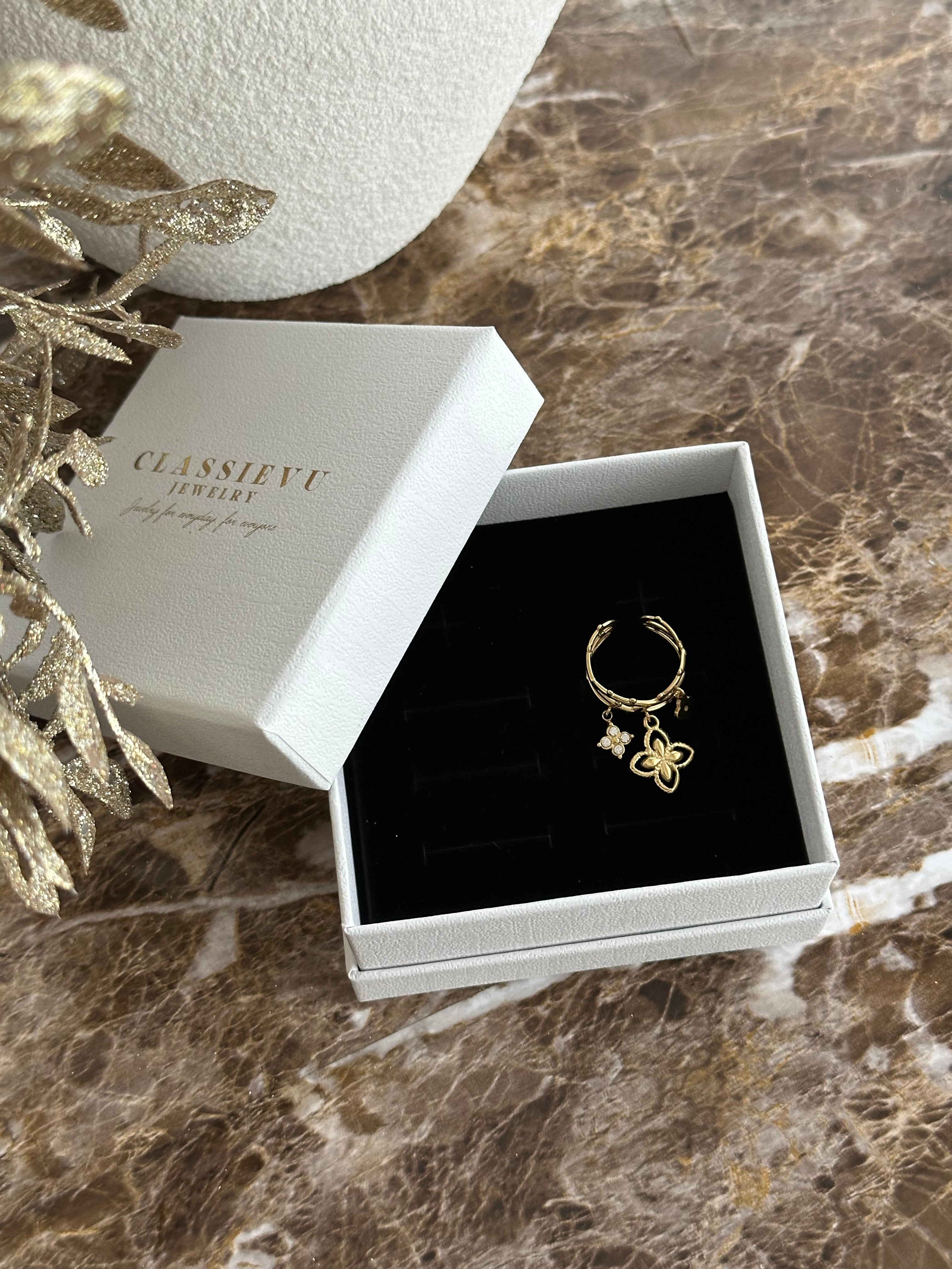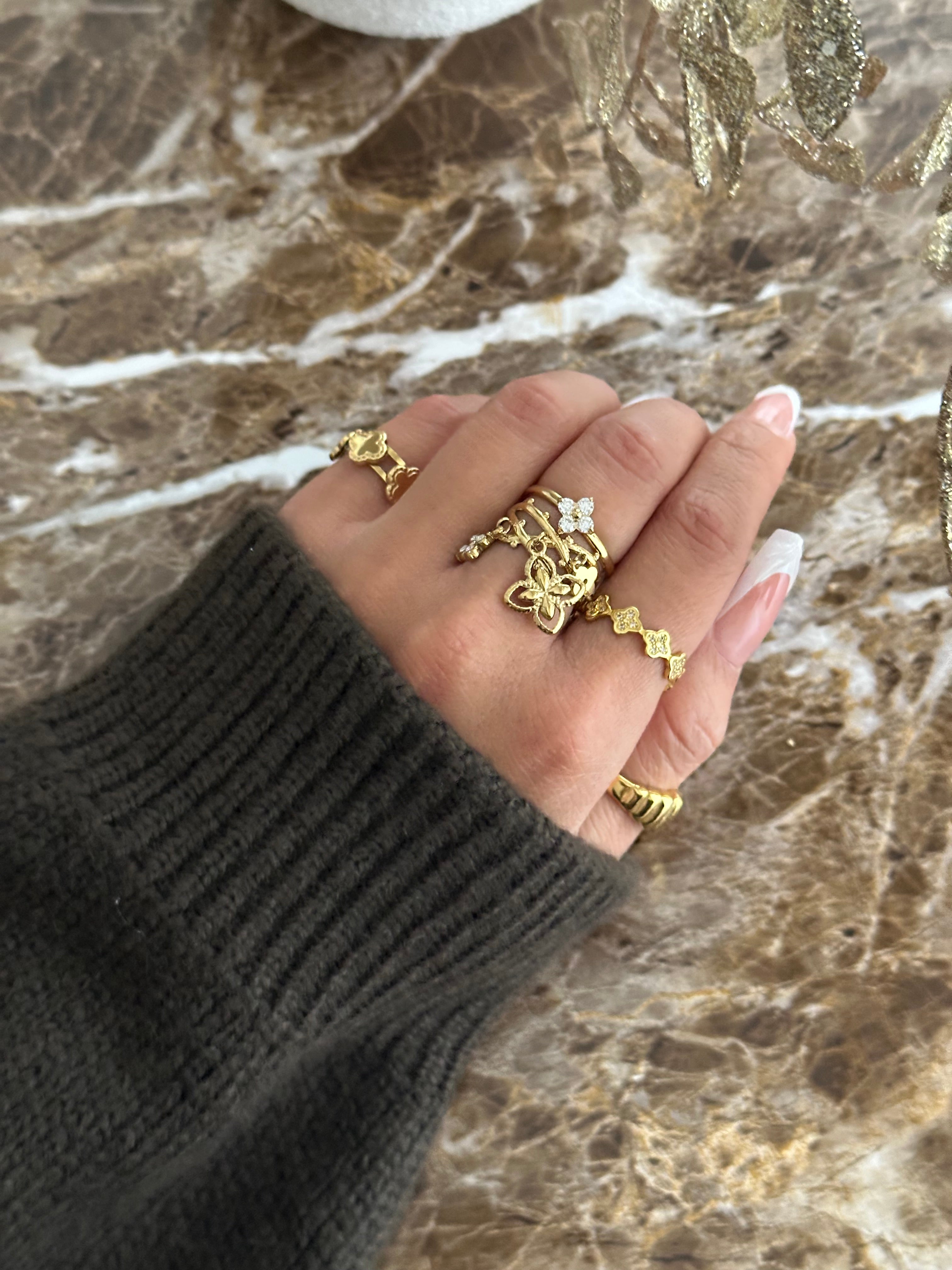 Unser verstellbarer CHARMS Ring vereint zeitloses Design mit hochwertiger Verarbeitung – perfekt für jeden Anlass. Gefertigt aus robustem Edelstahl und veredelt mit einer feinen 14 Karat Vergoldung, überzeugen sie durch edlen Glanz und besondere Langlebigkeit.