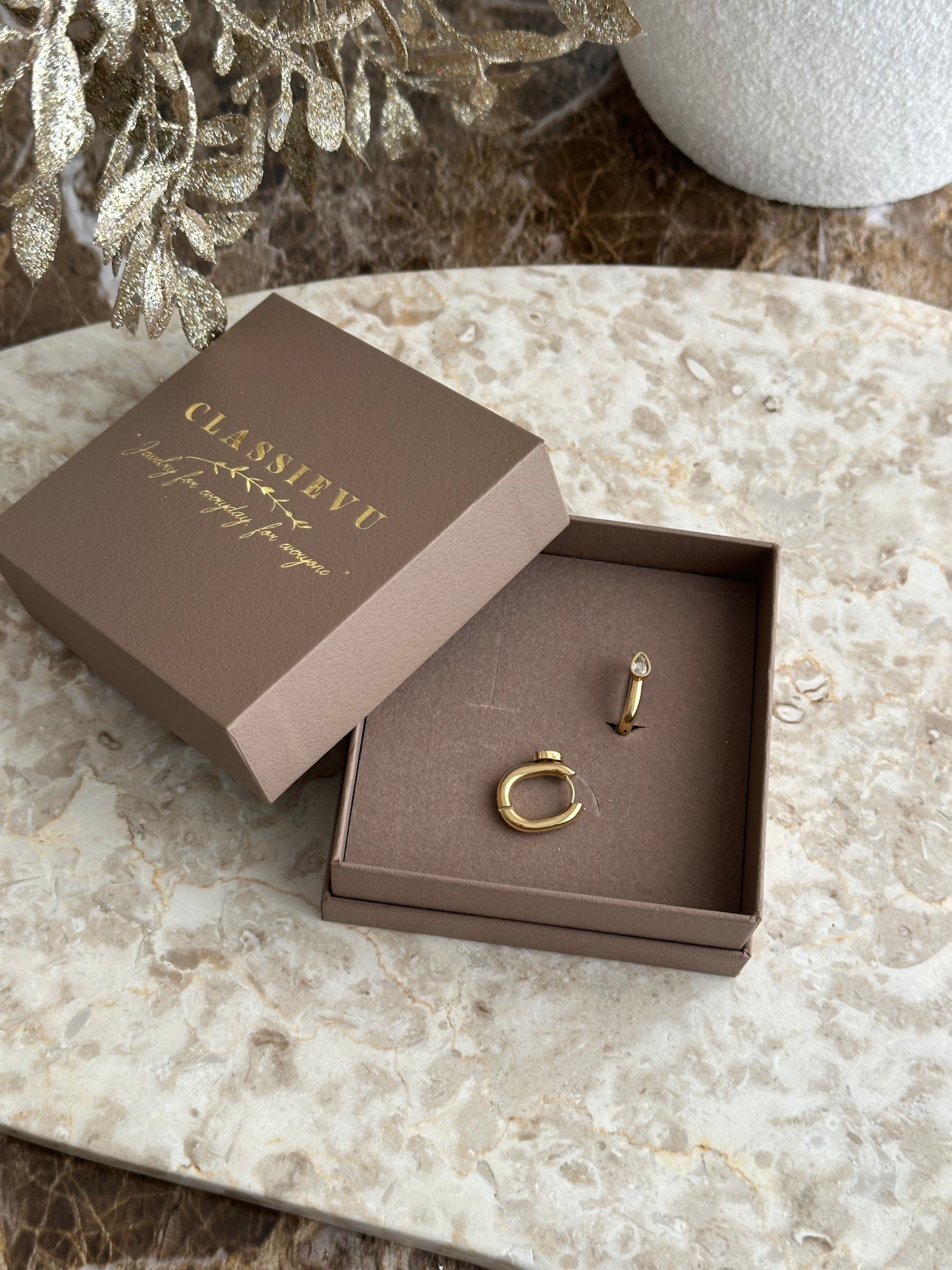 Unsere eleganten Ohrringe vereinen zeitloses Design mit hochwertiger Verarbeitung – perfekt für jeden Anlass. Gefertigt aus robustem Edelstahl und veredelt mit einer 14 Karat Vergoldung, überzeugen sie durch edlen Glanz und besondere Langlebigkeit.
