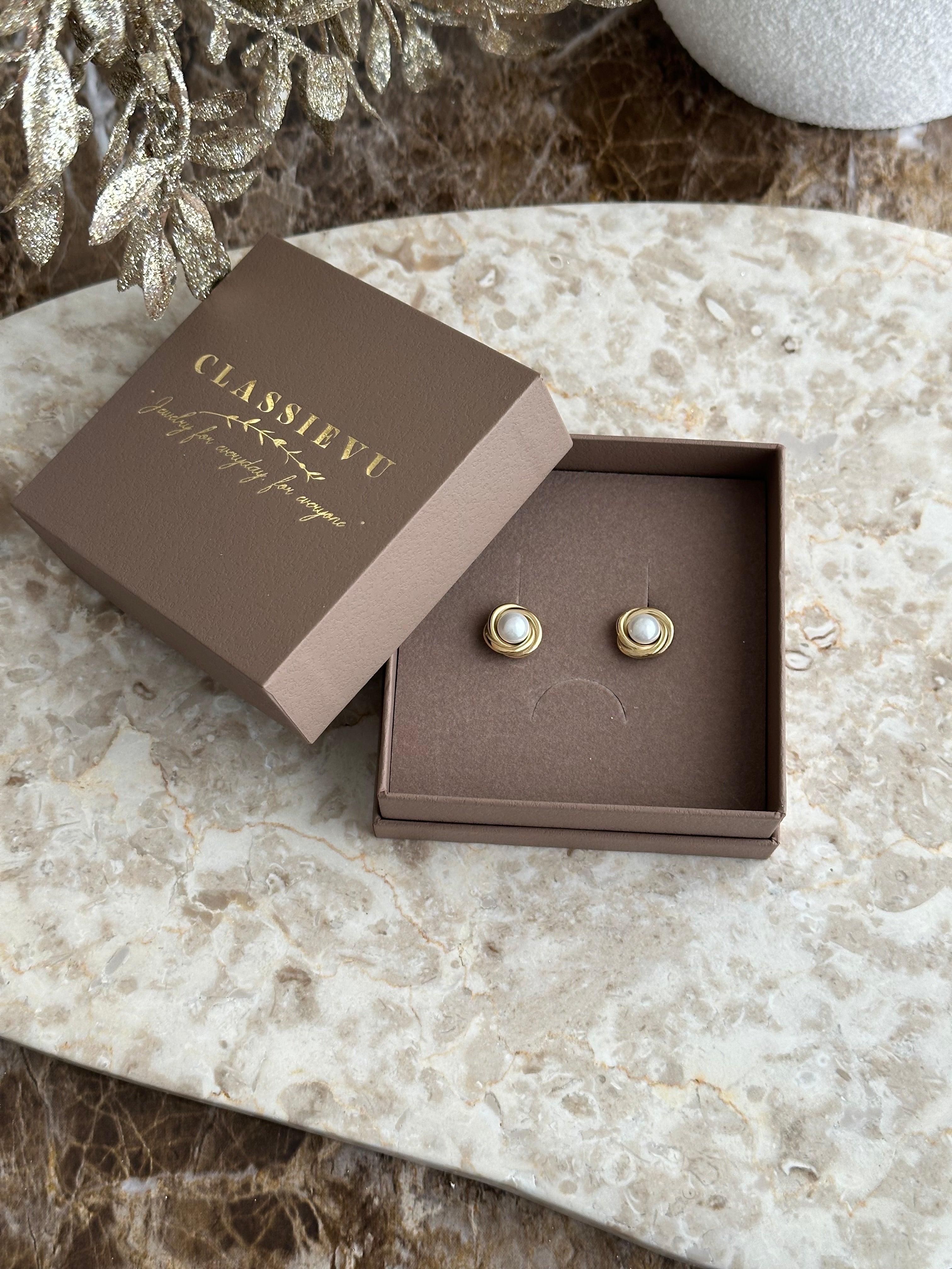 Unsere eleganten Ohrringe vereinen zeitloses Design mit hochwertiger Verarbeitung – perfekt für jeden Anlass. Gefertigt aus robustem Edelstahl und veredelt mit einer 14 Karat Vergoldung, überzeugen sie durch edlen Glanz und besondere Langlebigkeit.