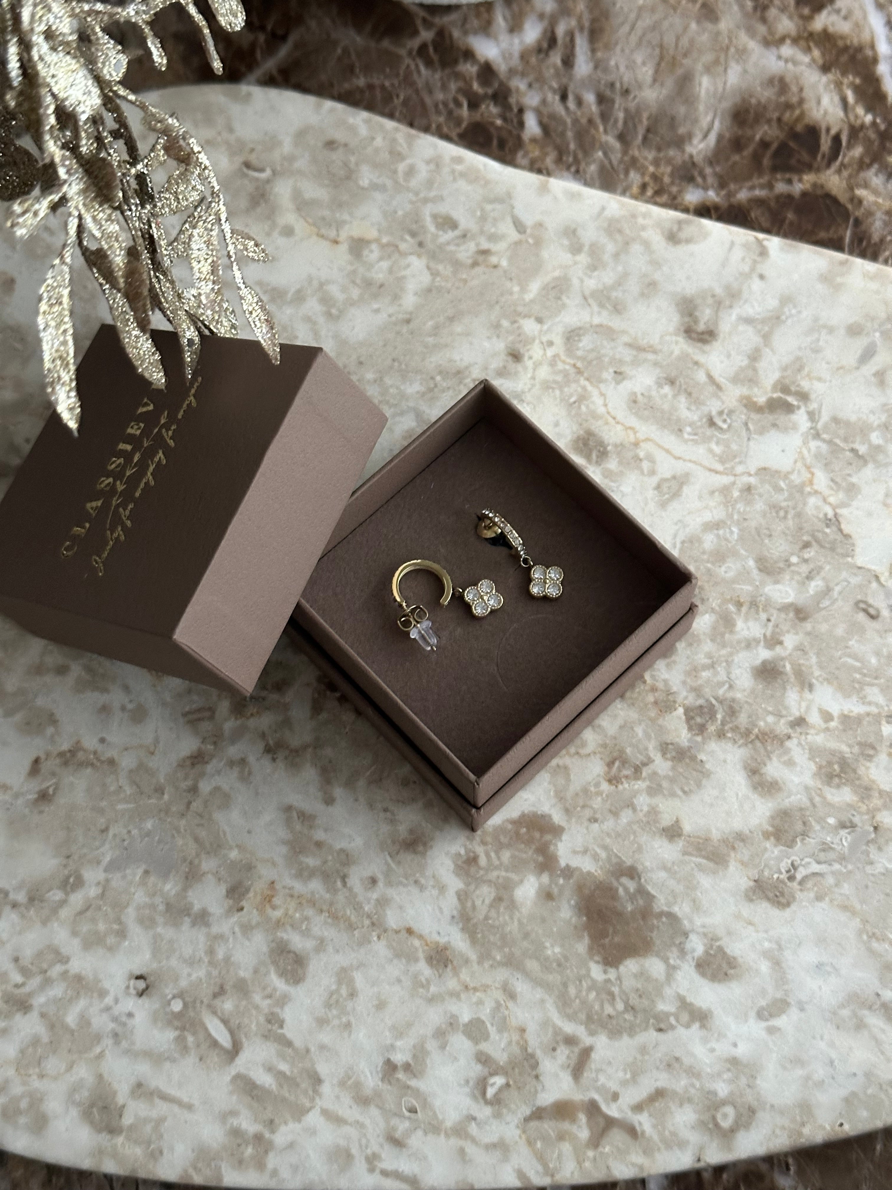 Unsere eleganten Ohrringe vereinen zeitloses Design mit hochwertiger Verarbeitung – perfekt für jeden Anlass. Gefertigt aus robustem Edelstahl und veredelt mit einer 14 Karat Vergoldung, überzeugen sie durch edlen Glanz und besondere Langlebigkeit.
