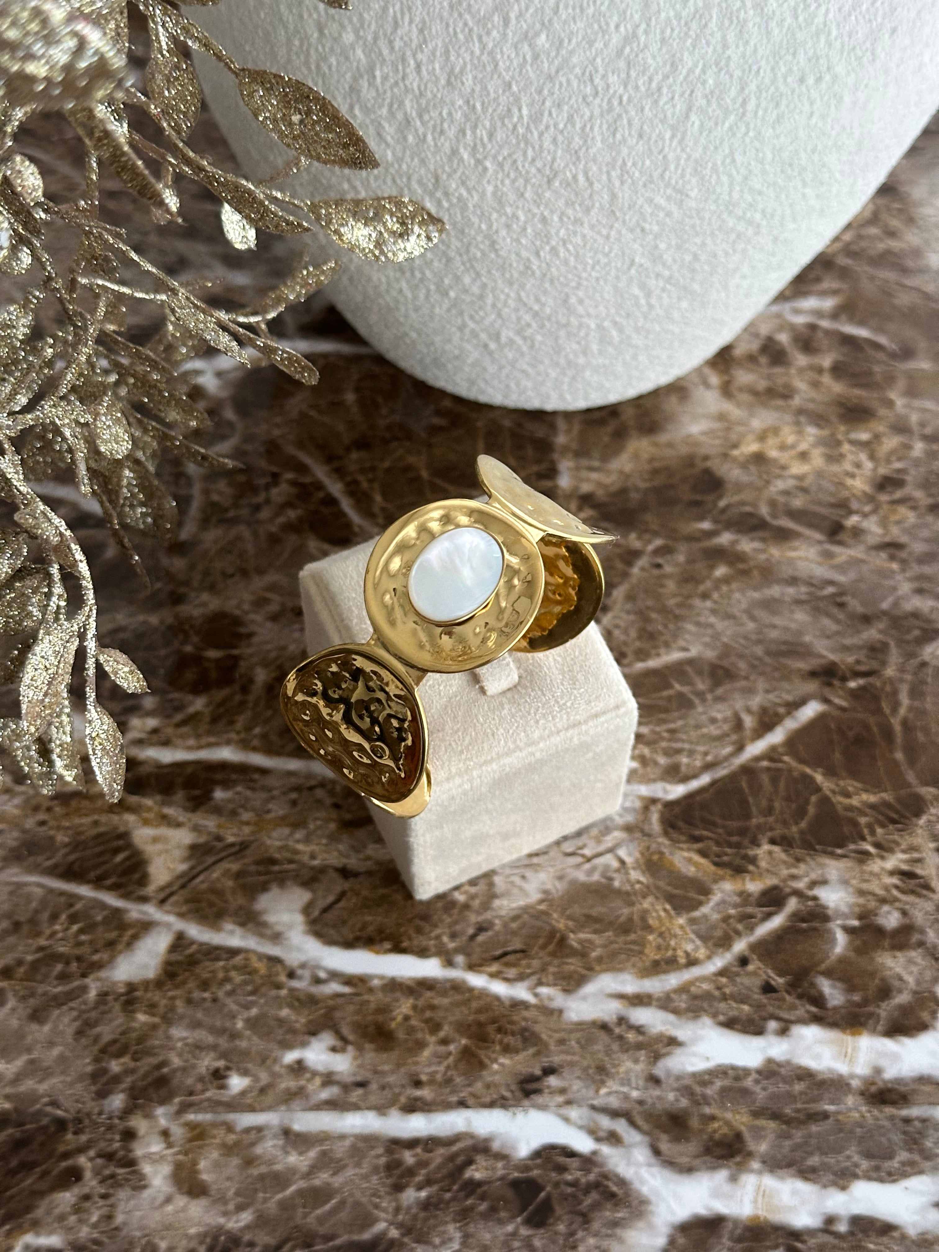 Wunderschöner Armreif aus Edelstahl mit einer 14 K Vergoldung.
