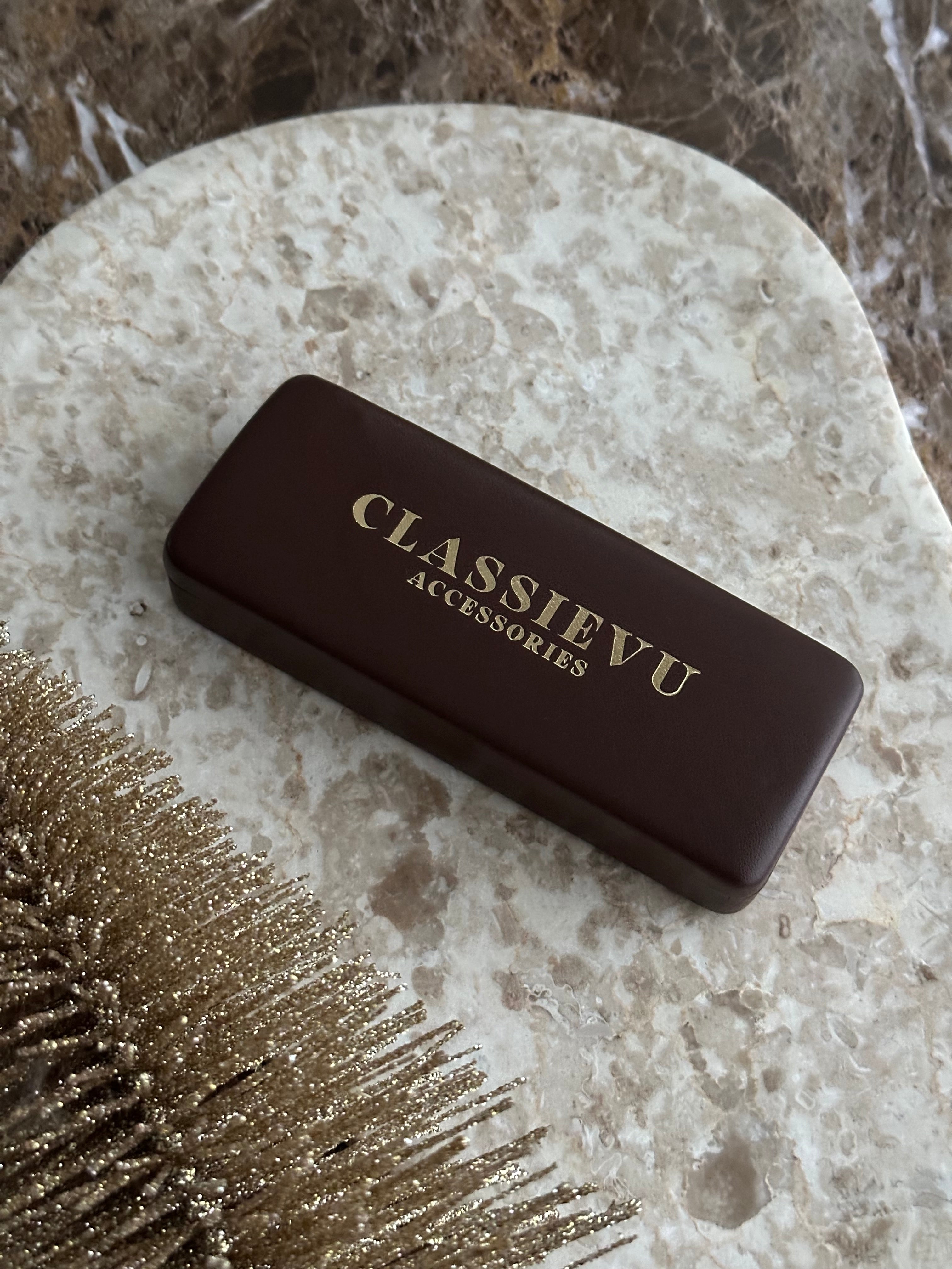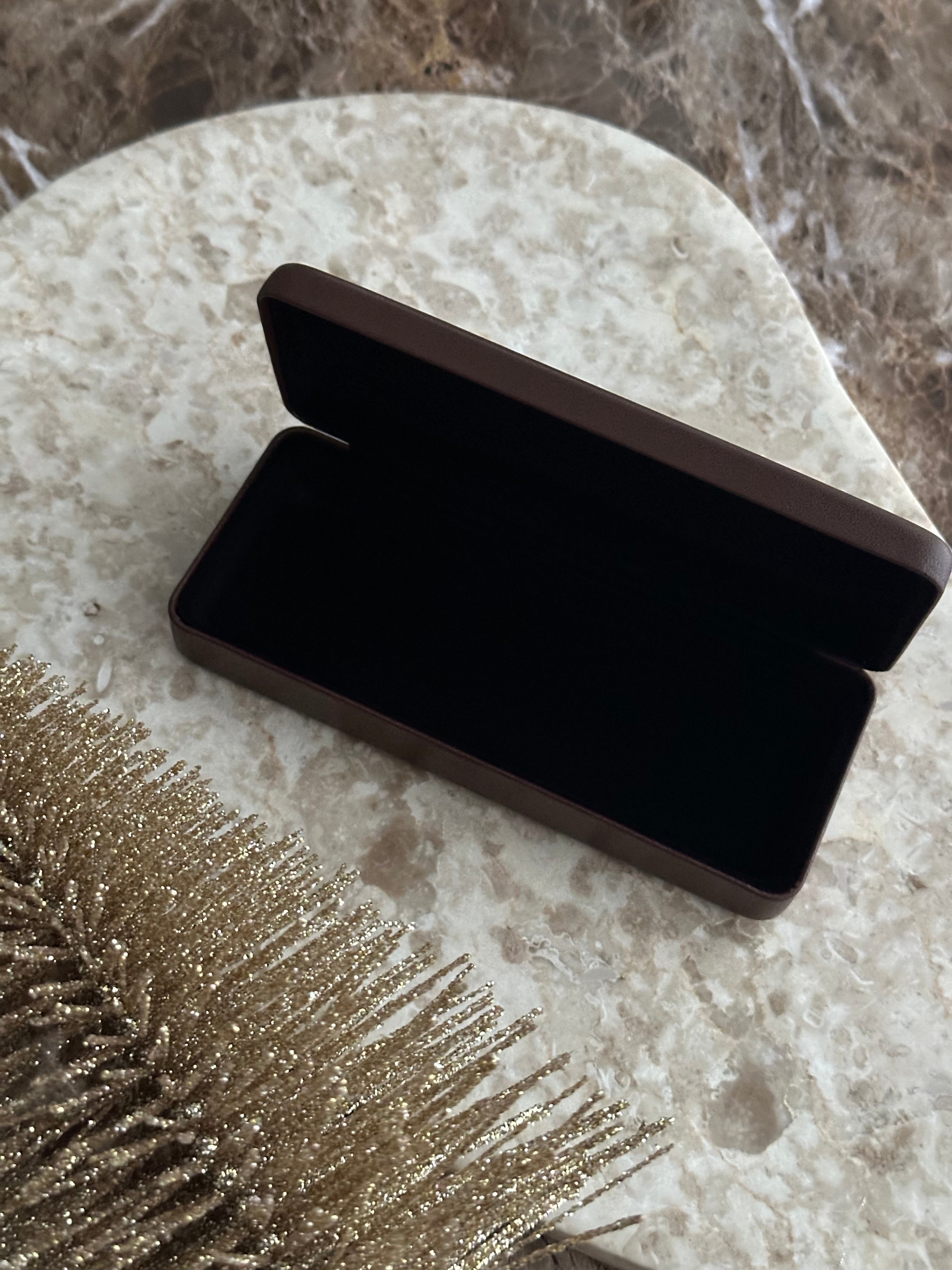 Ob für Sonnen- oder Korrektionsbrillen – dieses schokobraune Brillenetui ist die perfekte Kombination aus Funktionalität und Ästhetik und eignet sich auch ideal als hochwertiges Geschenk.