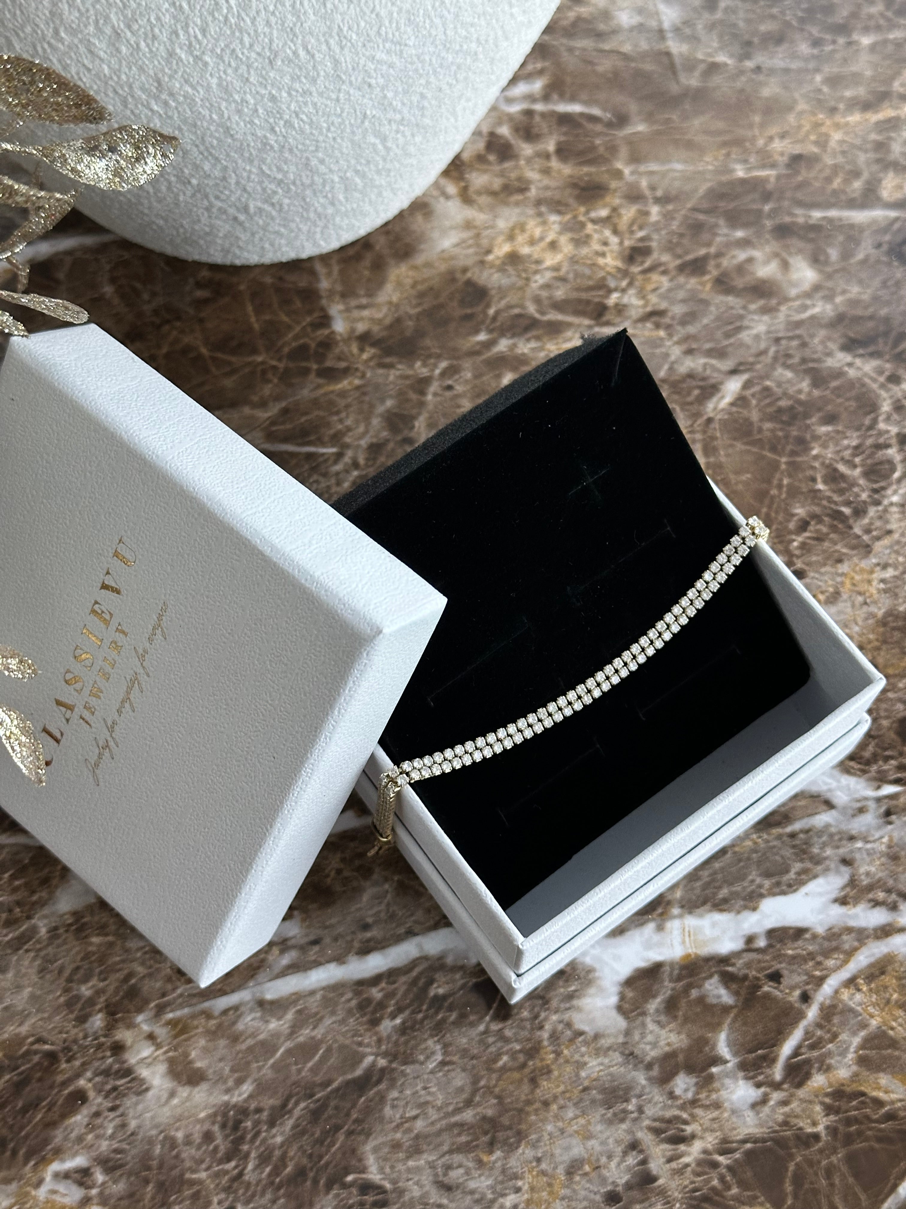 Unser elegantes Armband vereint zeitloses Design mit hochwertiger Verarbeitung – perfekt für jeden Anlass. Gefertigt aus robustem Edelstahl und veredelt mit einer feinen 14 Karat Vergoldung, überzeugen sie durch edlen Glanz und besondere Langlebigkeit.