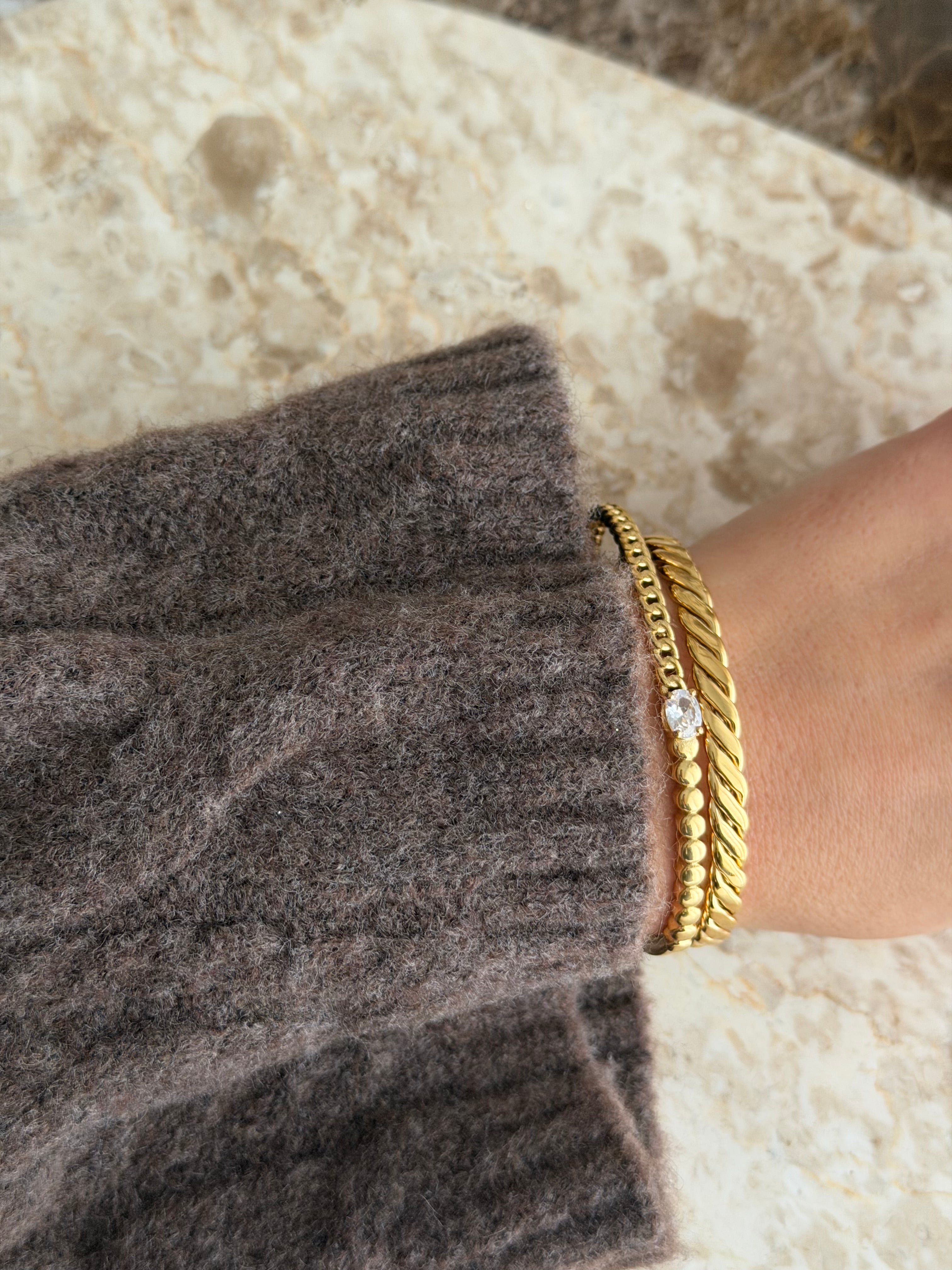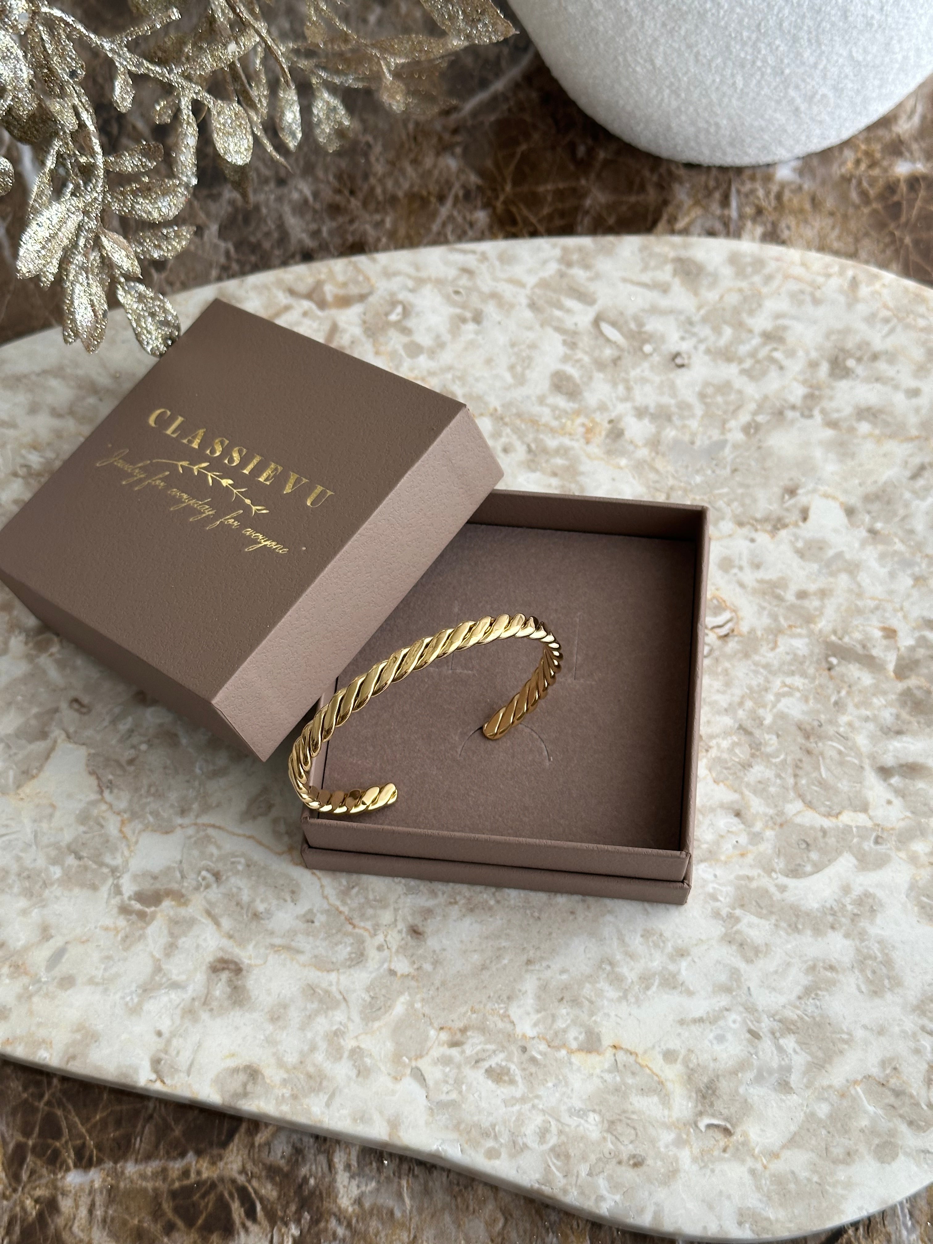 Wunderschöner Armreif aus Edelstahl mit einer 14 K Vergoldung.